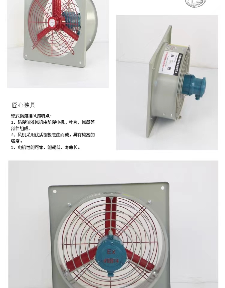The explosion proof industrial axial flow ventilation fan is designed for safe and efficient ventilation in hazardous industrial environments. It is equipped with a high-performance explosion-proof motor and durable aluminum alloy fan blades to provide stable airflow and reliable operation.